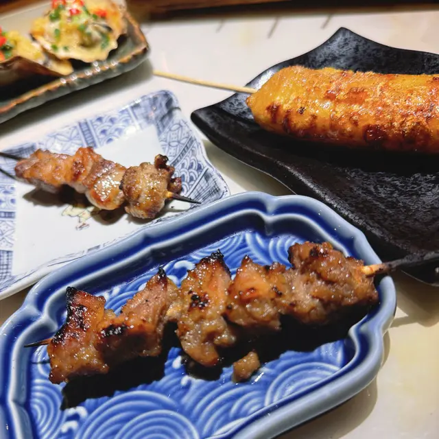 【鹽燒鮮三黃雞腿肉】肉質滑嫩,鹽燒製作保留雞嘅香味🍗【汁燒免治雞肉軟骨(付月見)】雞肉加軟骨 口感層次up 再配上蛋汁提升口感👅【中切鹽燒牛舌芝】口感有嚼勁,牛舌肥美軟腍🐷 【豚肉日本蘋果卷】有香甜嘅蘋果味,小朋友一定鍾意❤️