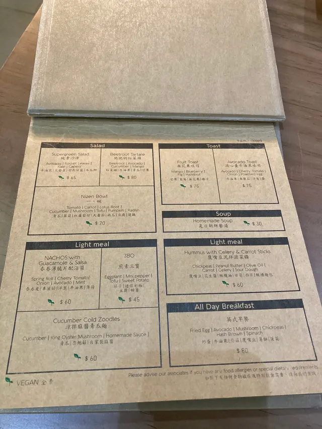一星期之一天素食 WINNIE.M小姐Level 32020-10-11181 views Follow 細細間鋪,座位不多主打係全素食物第一樣全素食物:羽衣甘藍意大利青瓜意粉入口唔覺食緊意粉嘅質感,似食緊爽口嘅蔬菜成件事好草青味,我覺得唔難食但比較適合一啲食得/慣清淡口味嘅人因為除咗草青味都冇其他味道而美式咖啡口味就偏酸羽衣甘藍意大利青瓜意粉2第二樣食物:All day breakfast 特別有鷹嘴豆,酸酸味味咁個炒蛋好滑,食得唔多嘅人一個All day breakfast都夠飽有凸all day breakfast一個all day breakfast $80,其實唔算貴,不過嘢飲要另外俾錢冇得跟餐,好彩食物質素都算中等The above review is the personal opinion of a user which does not represent OpenRice's point of view.LikeShare一星期之一天素食 一禪 https://s.openrice.com/QrKT03NGw00Report Post Ratings4Taste4Decor4Service4Hygiene3ValueRecommended Dishesall day breakfastDate of Visit2020-10-11Dining MethodDine InSpending Per Head$100