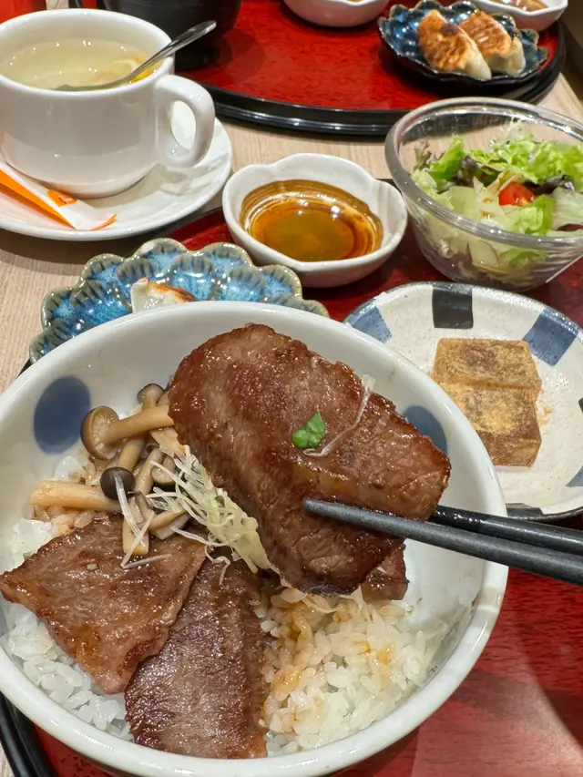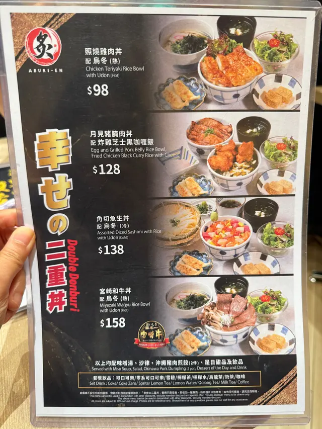 一次過嘆2款主食,大滿足 fennieyingLevel 42024-07-082K 瀏覽 關注 平時都會黎炙•宴食日式丼飯,見今次推出左個新定食,幸せの二重丼,可以一次過滿足有選擇困難既我,仲要百幾蚊就食到兩款主食,有齊沙津菜、麵豉湯、沖繩豬肉煎餃,甜品同飲品,超值!4可能星期五關係,今日比較多人,等位大約20分鐘就可以入去,餐廳座位闊落,,環境舒適,豬🐽燈籠嘅吊飾好特別。同男朋友每人都叫左一set 宮崎和牛丼 配 熱烏冬 $158沙律菜夠哂開胃沖繩豬肉煎餃好出色,入口係爆汁😋。宮崎和牛丼,和牛品會太膩,但食得出油脂豐滿,牛味香濃。加埋日本米既軟綿口感,真係食唔停口。熱烏冬鰹魚湯底好濃郁,但唔會太鹹,烏冬煙un彈牙,好食。黃豆粉蕨餅,撲上黃豆粉,香甜q彈,非常美味。以上食評乃用戶個人意見 , 並不代表OpenRice之觀點。讚好分享一次過嘆2款主食,大滿足 炙・宴 (荷里活廣場) https://s.openrice.com/QrKT08iPK00檢舉 張貼 評分5味道5環境4服務5衛生4抵食用餐途徑Dine In人均消費$150 (Dinner)