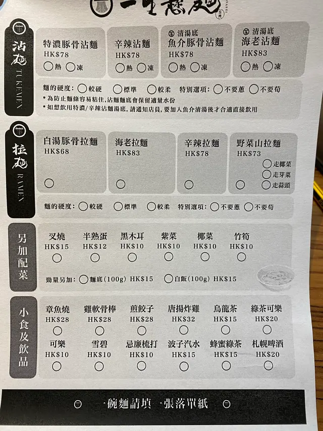 餐廳有多種沾麵和拉麵,亦有不同的小食。