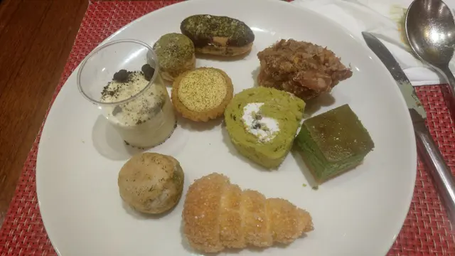 上網睇到好多媒體介紹酒店綠茶主題下午茶自助餐,因為女朋友係綠茶控所以訂位試下有咩咁特別。我地3點正去到要排隊等入座,心諗咁多人食應該唔會太差,入去到感覺幾大下。我出去拎食物,途中見到好多人碟中都有"三文治",心諗緊係咪好好味或者好特別呢?一出到去食物區見到d食物已經想笑,雜果沙拉(好似地x牌罐頭雜果),茄汁豆同腸(又係似罐頭),好d有炸雞同炸排骨(但2個牌子交換左,如果有人唔食雞或豬真係多謝晒),牛肉粥(好似白粥後加牛肉),反而乾蒸牛肉最好味,好啦講返主題綠茶野,最好味係綠茶雪糕,其他竟然無印象啦!呀好似有綠茶冷麵但無綠茶味。結論綠茶主題得個名取巧,要做主題都要比多d主題野先得架!