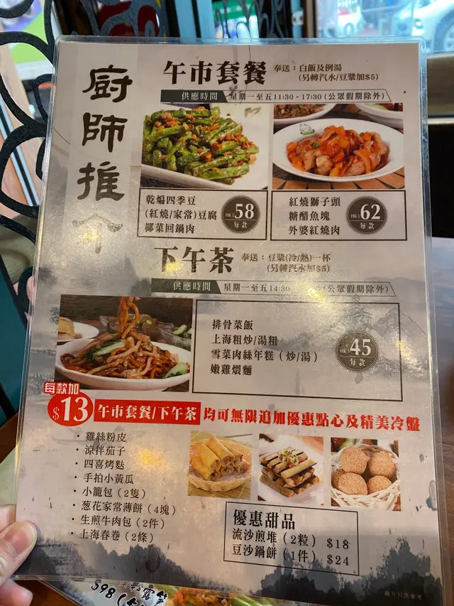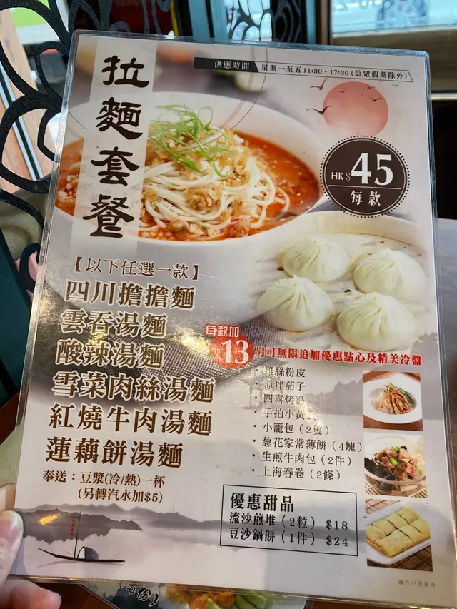 今日同同事一行二人試呢間上海菜~好耐無食啦,都有啲期待。我同同事都叫左2個lunch set ..都係叫左四川擔擔麵再加左小籠包(+$13)及蔥花家常薄餅(+$13)。首先,個擔擔麵就不過不失,因為通常食既擔擔麵個湯都會比較濃同「潔」身啲,但佢呢碗就比較水。小籠包就比想像中細,但入面啲肉汁都多既,味道就一般般,沒有什麼特別。最後,個蔥花家常薄餅卻有驚喜,個人覺得佢煎得比較香口,好鍾意佢嘅蔥香。又熱辣辣咁上,不錯不錯。人均平均$58,整體來說不過不失。