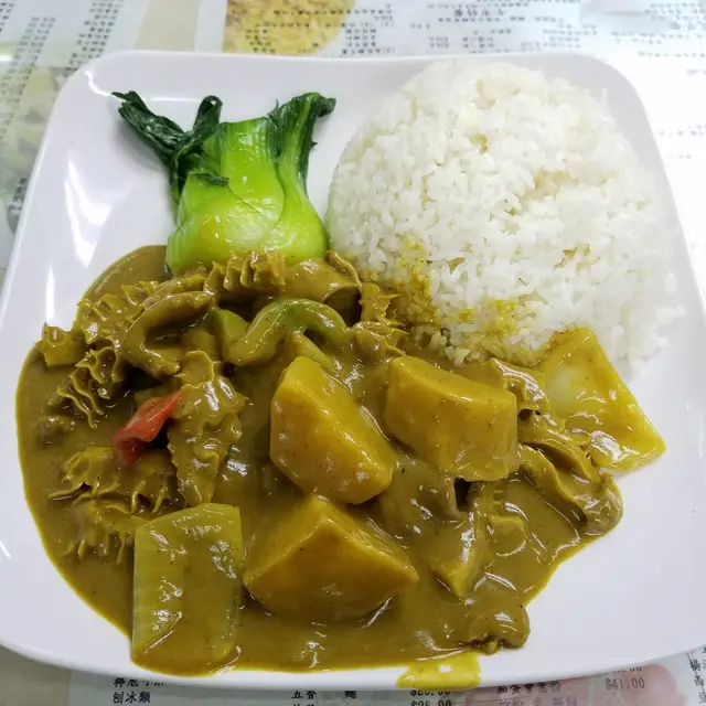 一般茶記 六重菇菇Level 42017-06-092K 浏览 关注 食得多某間茶記,又試下佢隔離呢間,餐牌格局完全一樣,連午餐啲飯都差唔多,係互相抄襲定係同一個老細?價錢都一樣,不過呢邊冷氣勁啲,多啲枱,但客少啲。先來個B餐咖哩牛肚牛肉飯,好多肚無乜肉,咖哩汁少少辣夠香,幾舊大薯仔入味又飽肚,飯好大個,但啲飯唔多掂,好散好乾唔好味,仲送上孤獨的一條菜。1同事要瓜粒湯飯,好大碗湯,好少飯,料都算多,冬瓜粒,絲瓜粒,火腿片,肉粒,蝦仔,菇粒,湯幾鮮味。1熱檸茶有五片檸檬,好闊綽。1凍檸茶四片檸,少甜都好甜。1全場都係男食客……感覺真係有啲麻甩。以上食记乃用户个人意见 , 并不代表OpenRice之观点。1分享一般茶記 金寶美食中心 https://s.openrice.com/QrKT0jy2L00检举 张贴 评分3味道3环境3服务3卫生3抵食用餐日期2017-06-09用餐途径Dine In人均消费$40 (Lunch)