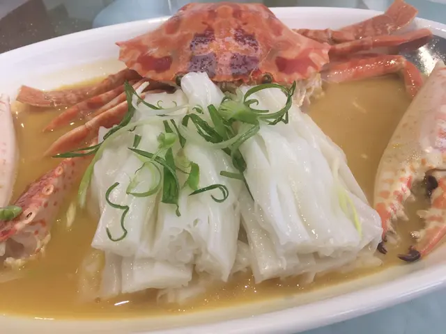 到主菜上場,雞油花鵰蒸花蟹配陳村粉,大班樓最出名的菜式,即使不太好吃蟹,只吃索汁的爽滑陳村粉以值回票價,雞油香,配花雕酒香,配蟹甜味,加起來是一絕
