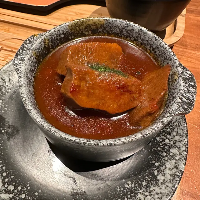 一試難忘的紅酒汁,使我有衝動再叫多一碗飯。厚切牛舌經紅酒汁烹調後,口感軟嫰,肉味更香且甜,十分開胃。