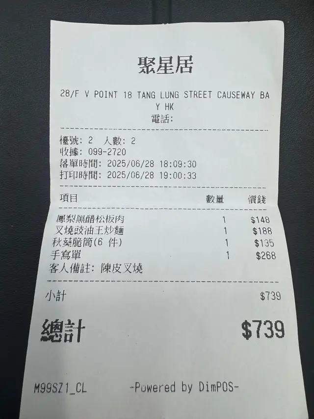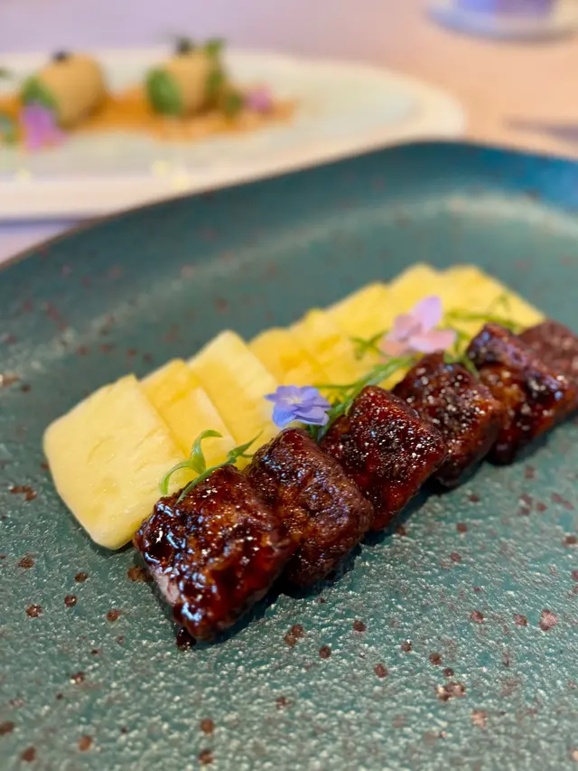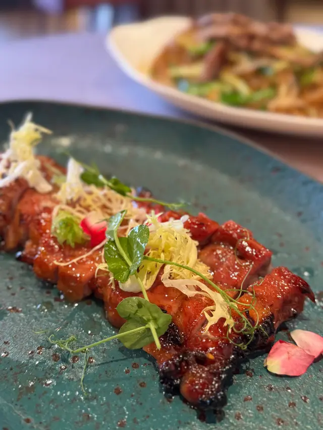 一試難忘!燶邊黑毛豬叉燒 cynnnwongLevel 42025-07-02116 views Follow ❤️陳皮黑毛豬叉燒 自家製叉燒用黑毛豬肉,肥瘦啱啱好,肉質嫩滑帶住淡淡蜂蜜光澤,陳皮香味微微點綴,香甜又唔膩,一試難忘!!🧡鳳梨黑松板肉 黑松板肉爽脆彈牙,熱辣辣上枱,配埋冰涼酸甜鳳梨提升層次,肉香同果香完美交融,一口一啖好清新又唔會膩。而且擺盤仲好精緻,打卡一流💛秋葵酥蟹肉脆筒 酥筒外層香脆熱辣,中間餡料係秋葵碎同蟹肉絲,微微冰涼。口感層次豐富,筒薄但承托到脆口又唔油膩,好精緻細膩。💚燶邊叉燒豉油皇炒麵炒麵火候掌握得好,豉油味滲透晒每條麵,炒得乾身唔太油膩,好惹味~份量又多,好有飽足感!!The above review is the personal opinion of a user which does not represent OpenRice's point of view.LikeShare一試難忘!燶邊黑毛豬叉燒 聚星居 https://s.openrice.com/QrKT0m41T00Report Post Ratings5Taste5Decor4Service4Hygiene4ValueDining MethodDine In