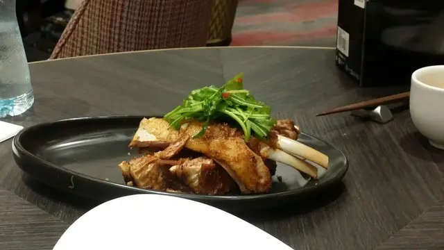 到主角片皮鴨片皮鴨真係好好食佢先起左鴨皮底層係鴨肉 鴨烤得好香 皮亦做得鬆軟 兩者夾住一齊食味道真係唔錯(呢到係一隻份量)