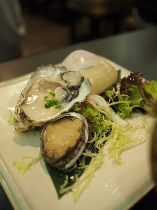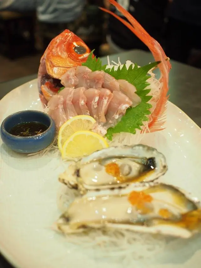係是日推介度叫左金目鯛刺身同日本室津生蠔,金目鯛既賣相好靚,一睇就知新鮮,魚肉微甜又有彈性,點埋佢旁邊酸酸地既醬汁又好開胃。 平時食澳洲,法國蠔就多,日本室津生蠔真係未試過,一於叫兩隻試下,質地都幾Creamy,不過海水味同蠔味就較淡,岩一d初嚐征蠔既朋友食。