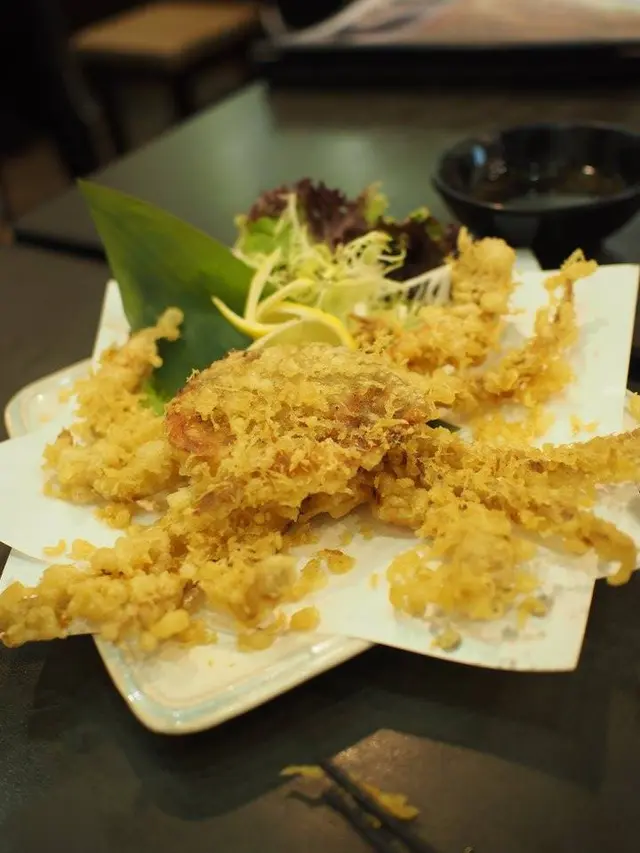 我同細妹都好鐘意食軟殼蟹,所以一見到呢度有軟殼蟹天婦羅就話一定要叫。 原隻軟殼蟹炸到金黃色真係好吸引,炸得幾乾身,一d都唔油淋淋,好酥脆,軟殼蟹味好香濃,正!