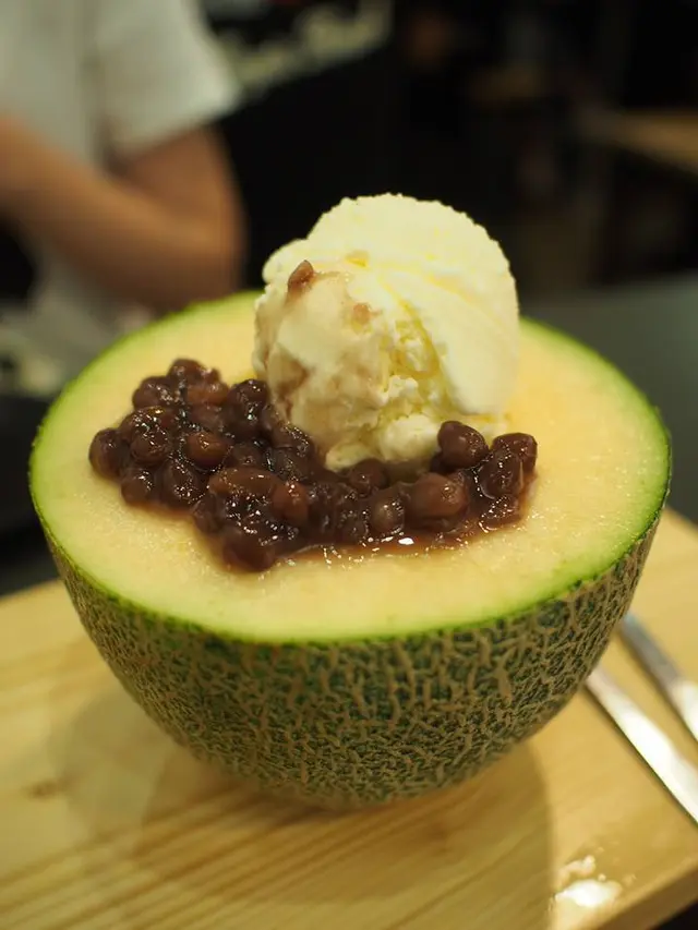 最後食埋甜品,溫室蜜瓜紅豆芭菲,一上枱真係嘩!一聲。係成半個日本蜜瓜,好夠份量,呃like一流,先食蜜瓜,好甜,再將紅豆同雪糕mix埋黎食,紅豆好大粒,食完真係大滿足。