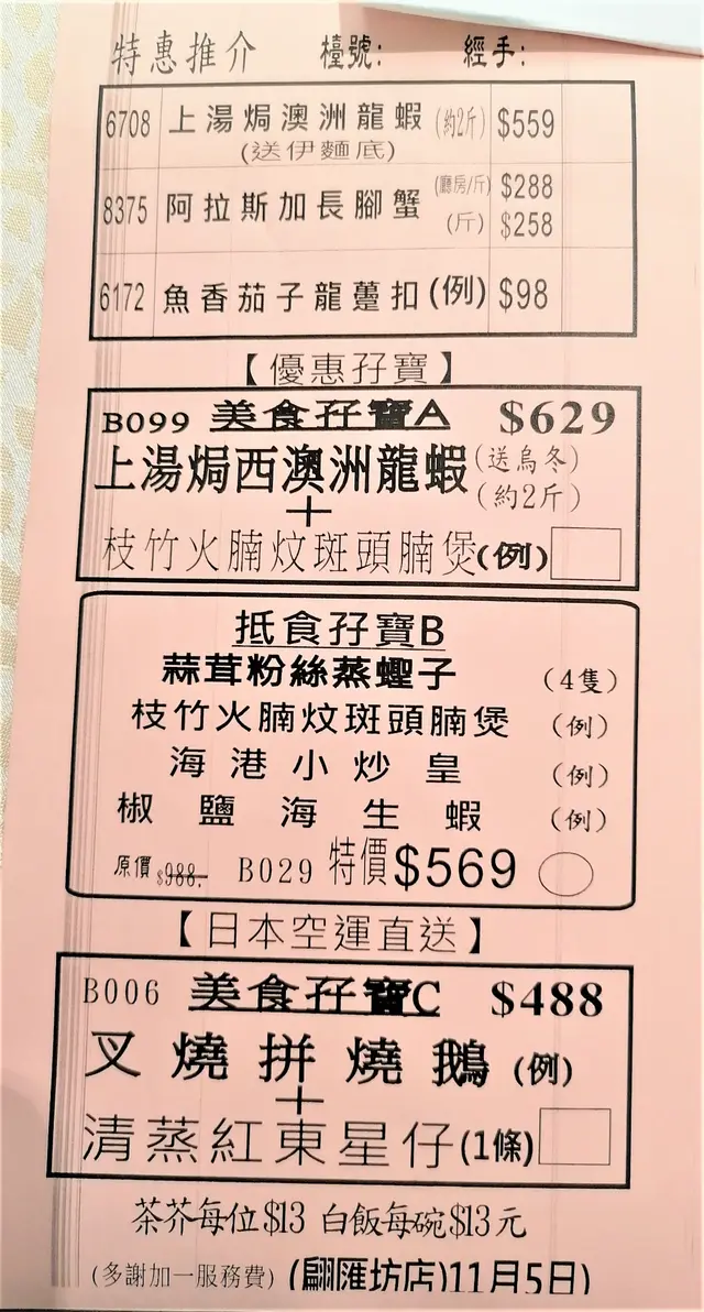 ❷ 另收加一服務費