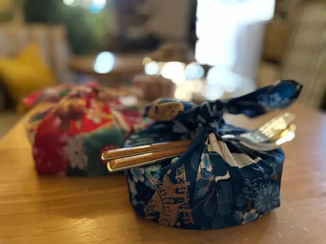 便當包裝好吸引,有一大塊好靚嘅和式嘅便當布包住個便當,好有日本嘅氣息。咁因為我係食漢堡扒嘅關係,所以佢就pack埋叉同埋匙羹,朋友食炸雞便當就會配筷子。呢個便當打卡真係一流,好滿足,好似自己去咗日本😆