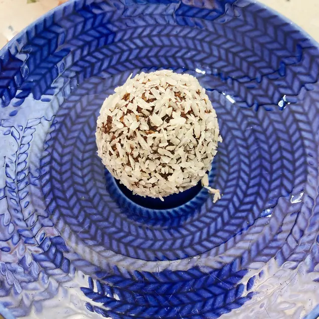 用椰絲整成嘅朱古力波🍫外層係椰絲,食落有好香嘅椰子味🥥入面係軟滑嘅朱古力,幾香甜,不過呢個係減糖版本,健康啲