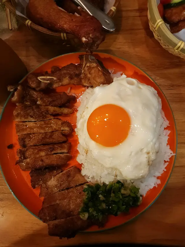 另外叫左蔥油豬扒蛋飯 個樣超級靚仔 檯面有支豉油撈飯用 個調味唔錯…帶少少甜又唔會大鹹…再加埋蔥油同蛋黃…無餸都可以爬兩碗飯。 個香茅豬扒份量都幾大…味道唔錯