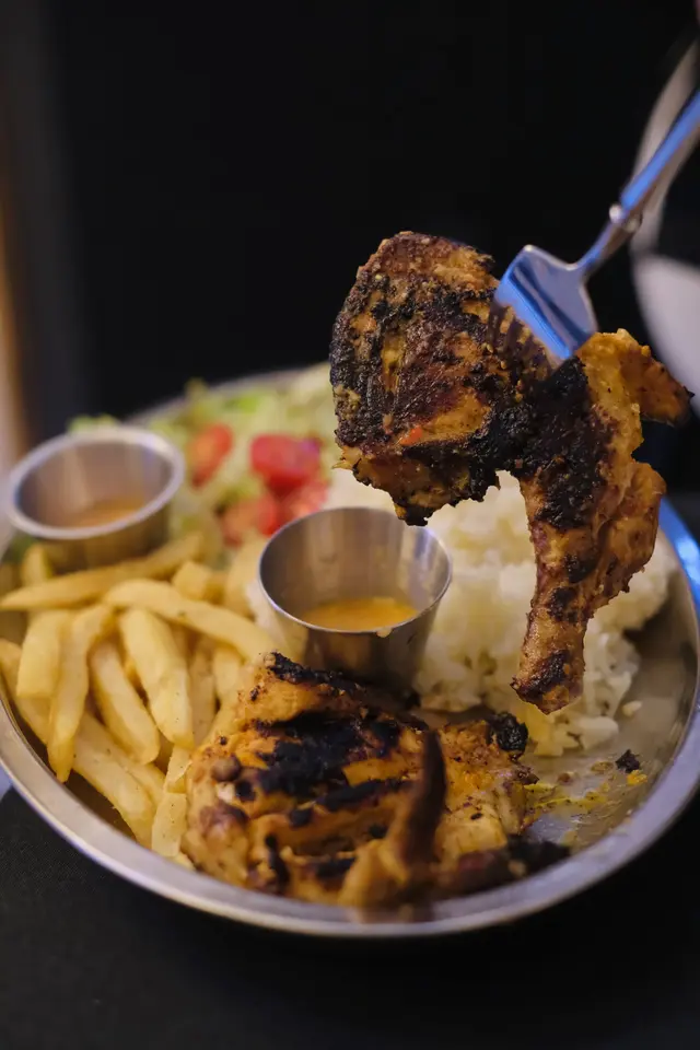葡萄牙料理之一,即係烤雞,重點係個霹靂霹靂醬(Piri Piri Sauce)酸辣惹味,配肉類一流,有啲似泰式酸辣醬,個醬好食到我用嚟點埋薯條。雞肉唔係嫩滑質地,外皮烤得好香,令人食慾大增。除咗薯條、仲有飯同沙律,份量好大,兩個人食都夠,不得不提沙律嘅醬汁好開胃。
