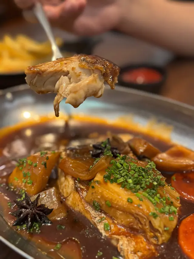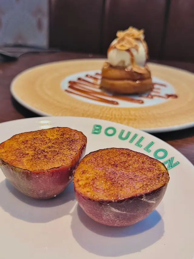 上環浪漫法式小餐館 yanness.aLevel 32025-05-101K views Follow 趁住春季restaurant week 嚟到上環浪漫法式小酒館🇫🇷,復古設計環境靚又有情調,門口仲有個半開放式窗比人打卡影相📸人均$398包括3道菜🌟,人氣Crème Bruleé🍮都喺餐牌當中,用熱情果殼載住嘅燉蛋🥚,1開2咁上碟,焦糖面燒得脆而香✨,燉蛋有熱情果味道及奶香味上足,酸酸甜甜,非常滑~主菜Fish of the day有驚喜😍,以高溫香煎方式將魚煮得外脆內軟,烤得軟稔入味,好味🤤另單點咗店員推介嘅法式牛油焗田螺,喺經典法國菜頭盤,牛油非常香,點埋麵包都係一個好選擇💕📍 Bouillon (上環)上環磅巷6號地舖3The above review is the personal opinion of a user which does not represent OpenRice's point of view.LikeShare上環浪漫法式小餐館 Bouillon https://s.openrice.com/QrKT0EXDS00Report Post Ratings5Taste5Decor4Service5Hygiene5ValueDining MethodDine In