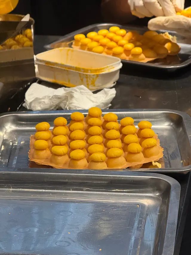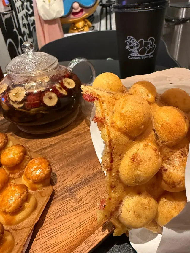 慕名而來當然要食鎮店之寶 Q版菠蘿包雞蛋仔,佢地採用自家硏發既雙重酥脆工法製作,質素保持現烤級,比傳統雞蛋仔脆爆三倍,最最最緊要嘅係平時我鍾意食菠蘿包淨係鍾意食佢陳皮,今次可以同步滿足「雞蛋仔+菠蘿包」雙重口癮,望住個製作過程,見到佢嘅外型真係cute 到唔捨得食