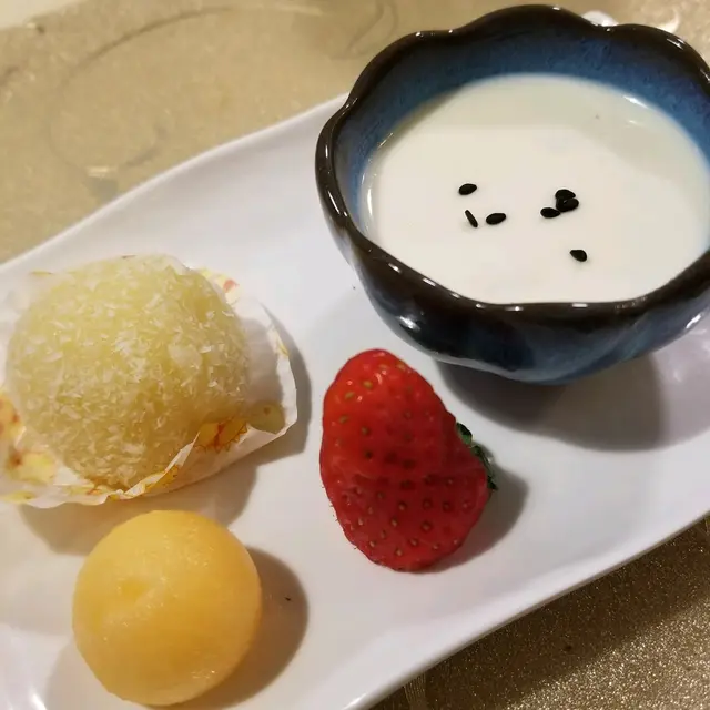 另外最窩心係餐後甜品,以前只係普通糖水,原來係豆腐布甸拼椰絲糯米糍,仲有生果。