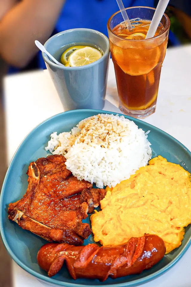 個飯正常好多,炒蛋幾滑而且有蛋味🐣,司華力腸外面脆皮又啖啖肉,好食😋。豬扒就煎得比較乾,雖然唔Juicy,但味道都叫OK,白飯唔會過硬,淋上少少甜豉油,起碼都叫做對得住個價格。
