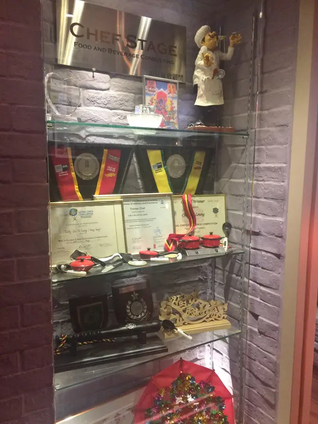 左邊玻璃櫃擺放著大大少少的獎牌和奬狀,更令食客餐廳增添多一份信心。