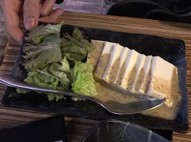 凍豆腐, 對於我黎講豆腐一定要夠滑同厚切, 呢個就絕對夠, 雖然好難夾起食, 但碟内有兩隻匙, 方便我地進食之餘也可以避免與其他食物味道混合, 激讚這種細心做法。