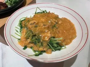 青嫩爽脆的豆苗與鮮甜的蟹肉粉完美搭配,令人忍不住連連稱讚。