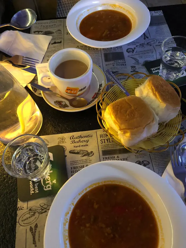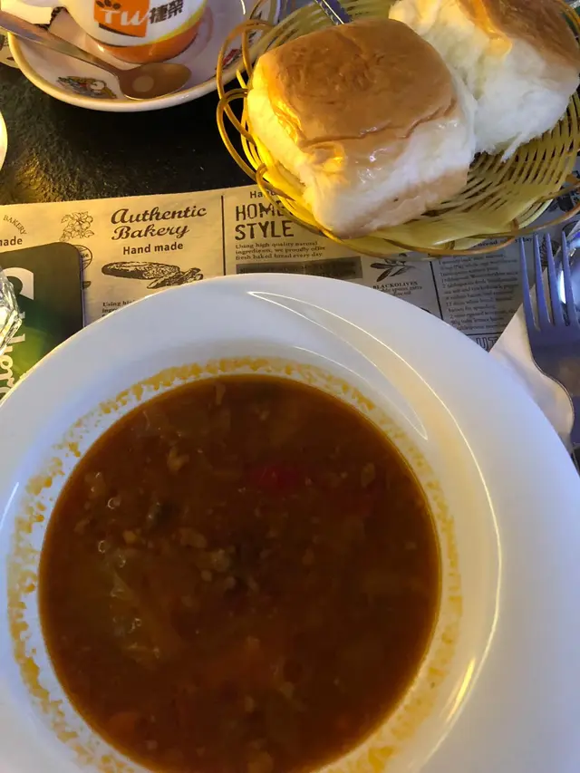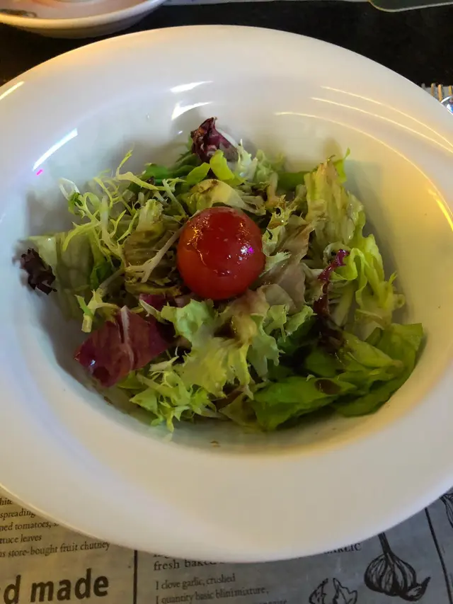 沙律係黑醋沙律,朋友唔食沙律所以醋呢啲野都係女人黎啦,不過不失。是日白湯係煙三文魚忌廉湯,我地都麻麻,所以都叫左紅湯,有跟餐包,個湯辣辣地好正好惹味,而且唔會太鹹,最驚喜係入面仲有牛尾!