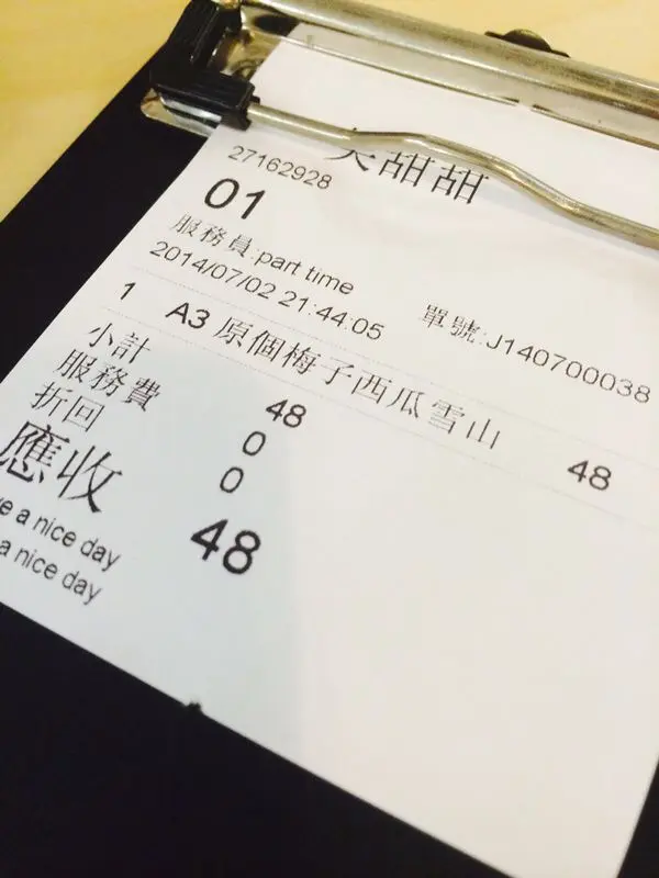冰的部分是冰加糖醬加色素打成的,入口只有下價的糖精感覺。梅粉呢?sorry 嚐不出來。店家把以上合成物加入半個西瓜肉再裝回西瓜中,便有製成如圖。除左中伏無其他形容詞,平常不會浪費食物的人,最後食剩大半個。回家途中直到現在還是覺得好口乾,如果西瓜會令人食到口乾,佢地到底用左咩材料,自己諗。