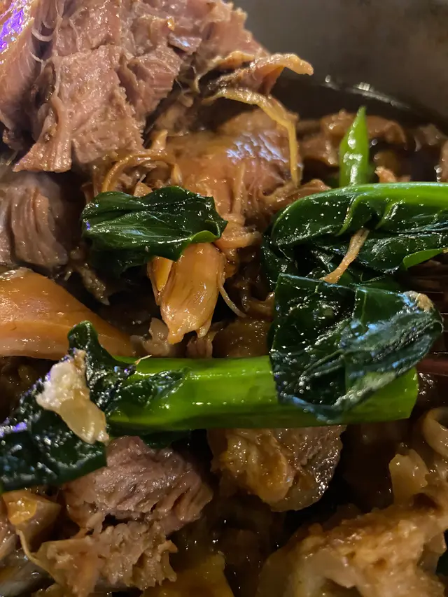 一打開餐牌,就已經吸引住我視線,但我朋友說不要叫太過肥膩,但我堅持一定要食,沒有令我失望完完全全不油膩,鹵豬手燜得軟腍腍又香又入味,連豬皮都一點又不覺得肥騰騰,煲底芥蘭完全吸收鹵水豬手湯汁精華,非常之甘香清甜又爽囗。