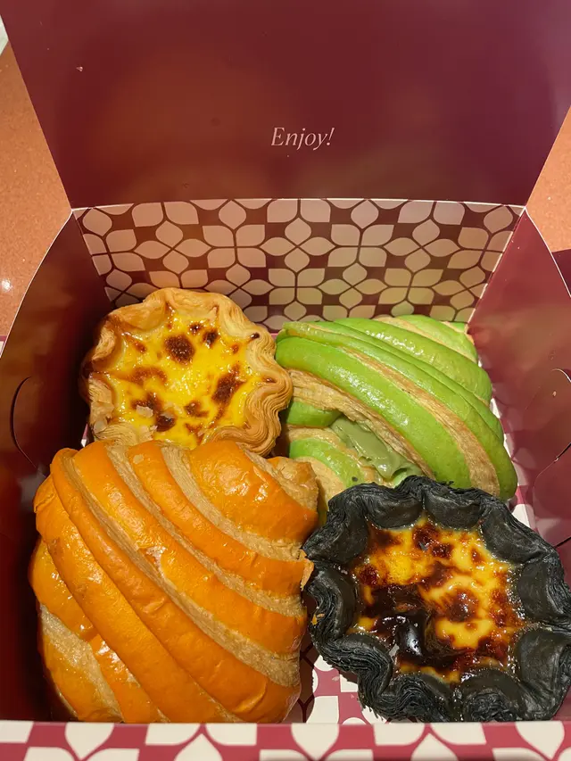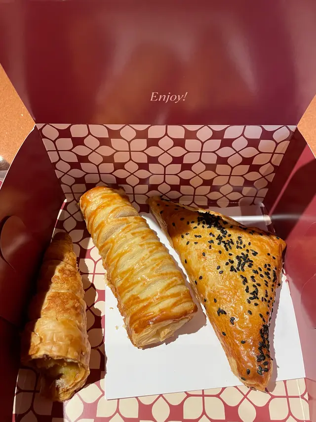 巨大版的牛角酥也不容錯過🤩!共有四種口味:開心果、黑芝麻、柚子和提拉米蘇,每一口都是爆餡的享受,滿滿的香滑忌廉真的會瞬間覺得幸福感爆棚!