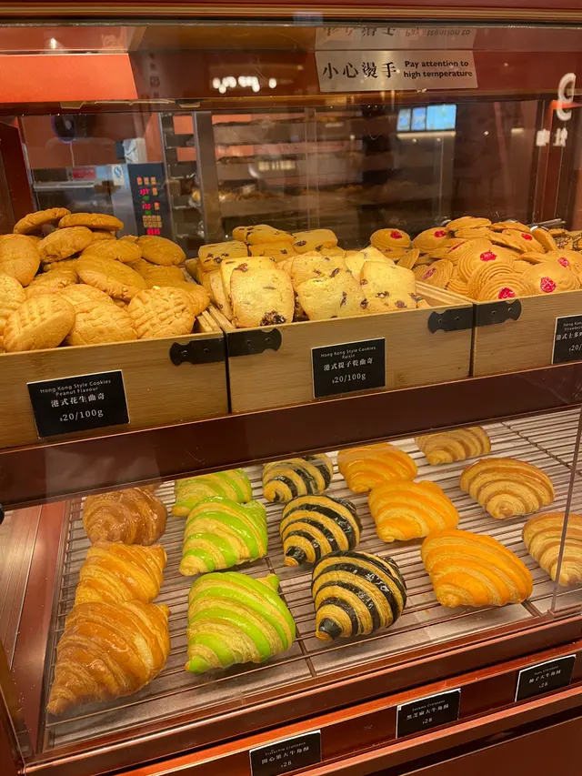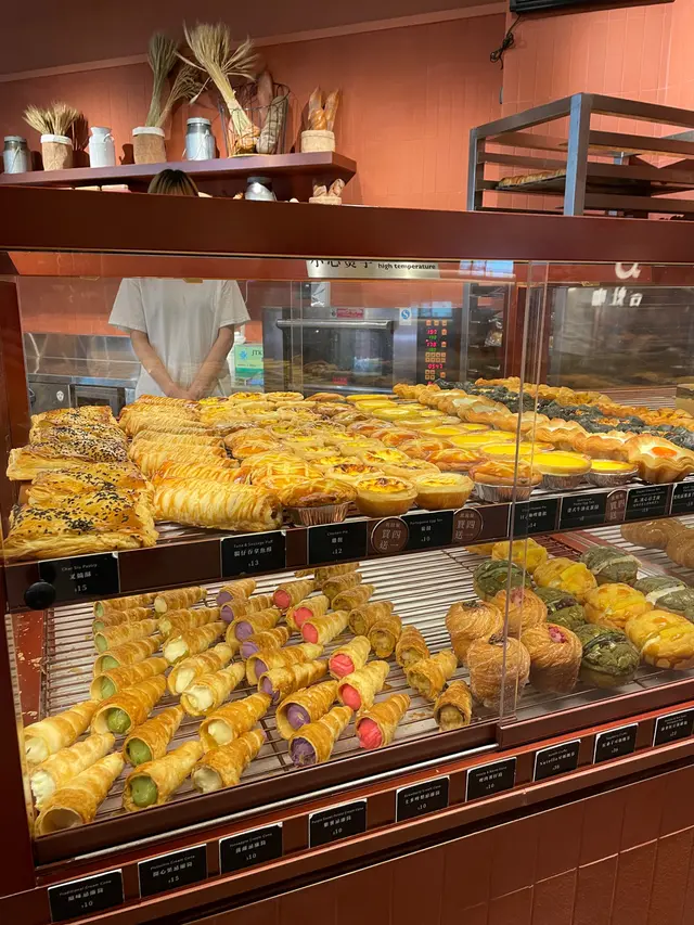 麵包種類讓人眼花撩亂。其中,超特別的限定忌廉筒很吸引我,小巧精緻的筒形酥皮,一共有六種口味可選:經典原味、菠蘿、開心果、紫薯、士多啤梨,以及非常獨特的煙肉薯仔筒!真的不知道該怎麼選擇呀!