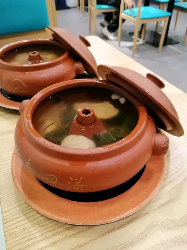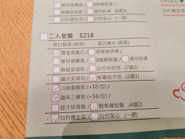 去朗8探朋友,旁邊的虹坊有幾間餐廳,近排少左飲茶,見到有間餐廳晚市都有點心類,即刻入去試試。餐廳格局企理、舒服。我地叫左一個二人餐,揀左醬皇蒸鳳爪、8號蝦餃王、紫薯桃子包、川味黃鱔飯、臘味三寶飯、白灼唐生菜。加左錢轉汽鍋燉湯,金銀菜燉豬肺湯、鮮淮山蓮子百合燉螺頭,湯料好足,味道一飲就知唔係味精湯,鮮甜~個汽鍋好特別,不過唯一想提議下,可以轉下個匙羹款或者轉細匙羹,咁會容易啲飲曬全部湯,唔會嘥。