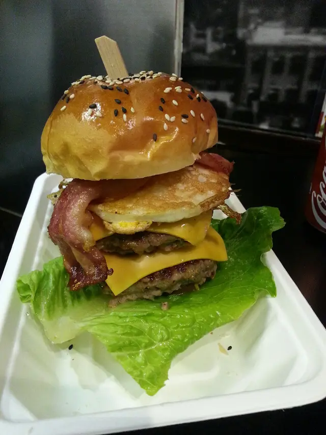 至尊漢堡$75,有兩塊牛肉,兩塊芝士,蛋同煙肉,分量取勝。