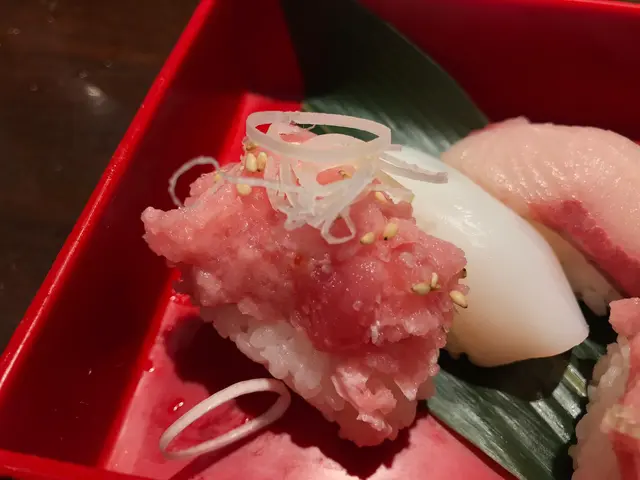 重點來了, 琳瑯滿目嘅擺盤好亮眼! 先食壽司, 特別一提鯛魚壽司, 魚味好甜好新鮮. 再食三文魚, 刺身厚切, 師傅一啲都唔輕手! 三文魚魚子魚蓉卷物不過不失, 驚喜欠奉. 而今次MVP一定係醃漬魚乾合桃, 如果有一碗白飯我一定光速送飯清哂! 再來海鮮雜菜天婦羅, 唔知海鮮在哪裡, 但天婦羅外形完整, 味道惹味, 幾好食!