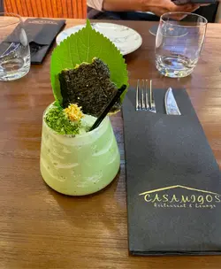 新開位於銅鑼灣駱克道樓上鋪,環境十分舒適,最愛露台位,很有情調,服務十足,而且個bar真心無得輸,一個mocktail 都落足心機,Tokyo Green Hornet,指定用日本宇治綠茶,必須用英國的heavy cream,再加上鮮奶和蛋白,連砂糖都是自己磨出來的,最點睛是上面的紫菜天婦羅,咬一口再飲一淡抹茶冰沙,個種複雜而衝擊味蕾的層次簡直難以形容,十分迷人!!👍🏻👍🏻👍🏻👍🏻烘蛋十分值得一試,好滑嫩