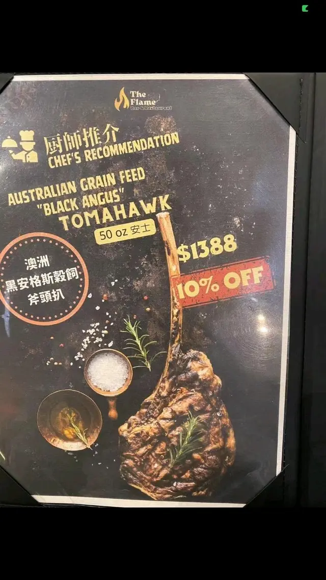 向香港有做斧頭扒嘅餐廳唔多而且一般都好貴(貴一倍都見過食過但質素都唔夠呢度好)今次呢個價錢1388仲有折,我地4個人兩男兩女,係絕對食唔哂 ,如果想試埋其他野,建議有5~6 個人食就剛好。