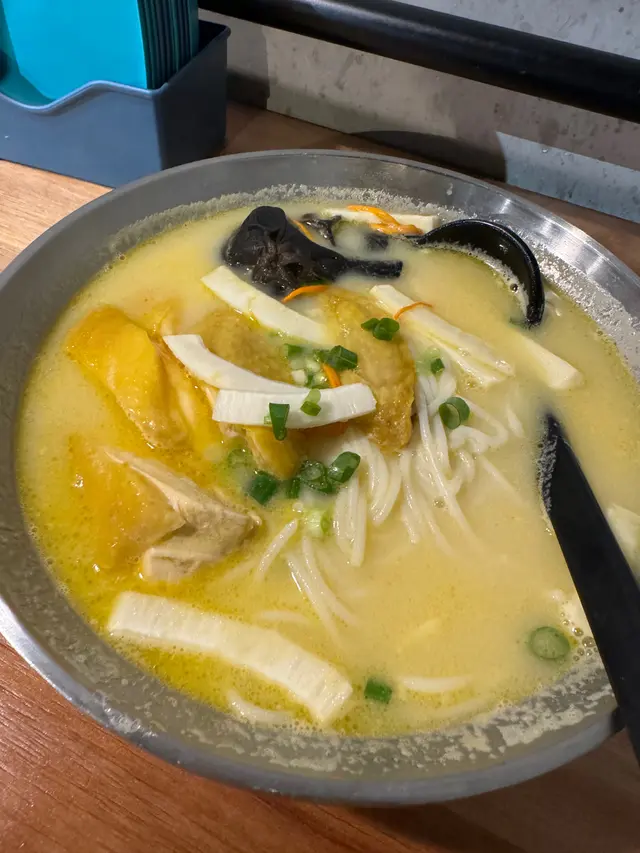相隔咗一段時間,無意中喺社交媒體網站post見到d foodie評價呢間仲講到好好咁,所以我約左友人做完gym過嚟試多次,今次椰子雞米線,講返少少過嚟時候嘅經過 。我同朋友兩個大概8:30左右過到嚟,已經有六,七人以上排隊排隊 。咁啱我哋排到去嘅時候啱啱好佢哋截龍。大概10分鐘左右我哋被安排入座 。因為已經諗好食乜嘢,已經可以即刻落單。我同友人都係Order米線扣底,大概45分左右,米線到左 。