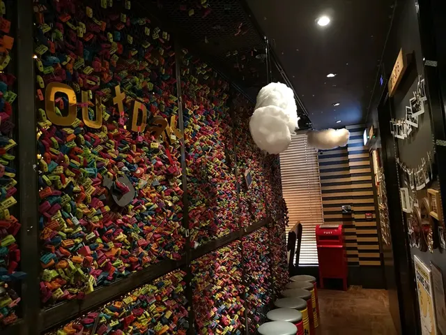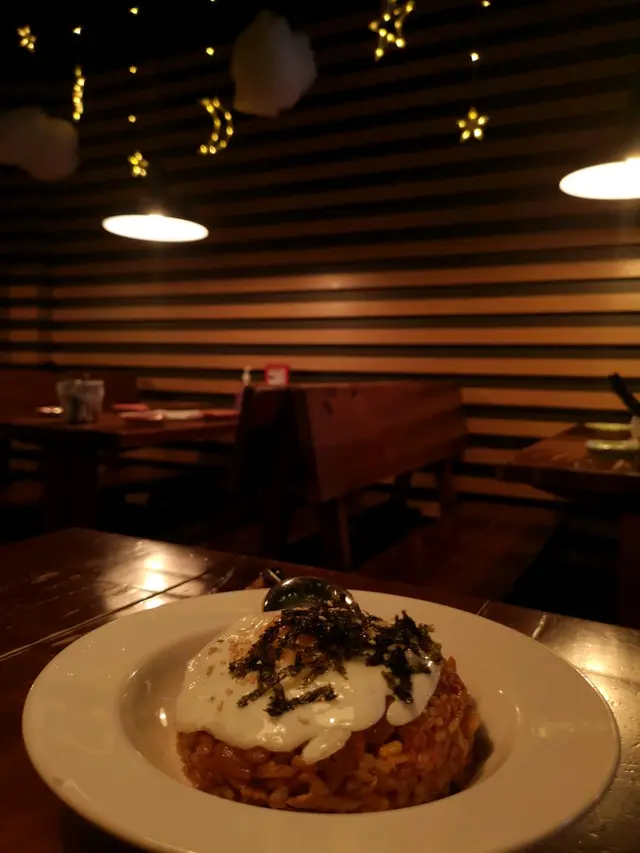 餐廳裝修好有情調,門口有一排情人鎖,室內枱頭有漫天星星,燈光微暗,氣氛浪漫,打咭一流!
