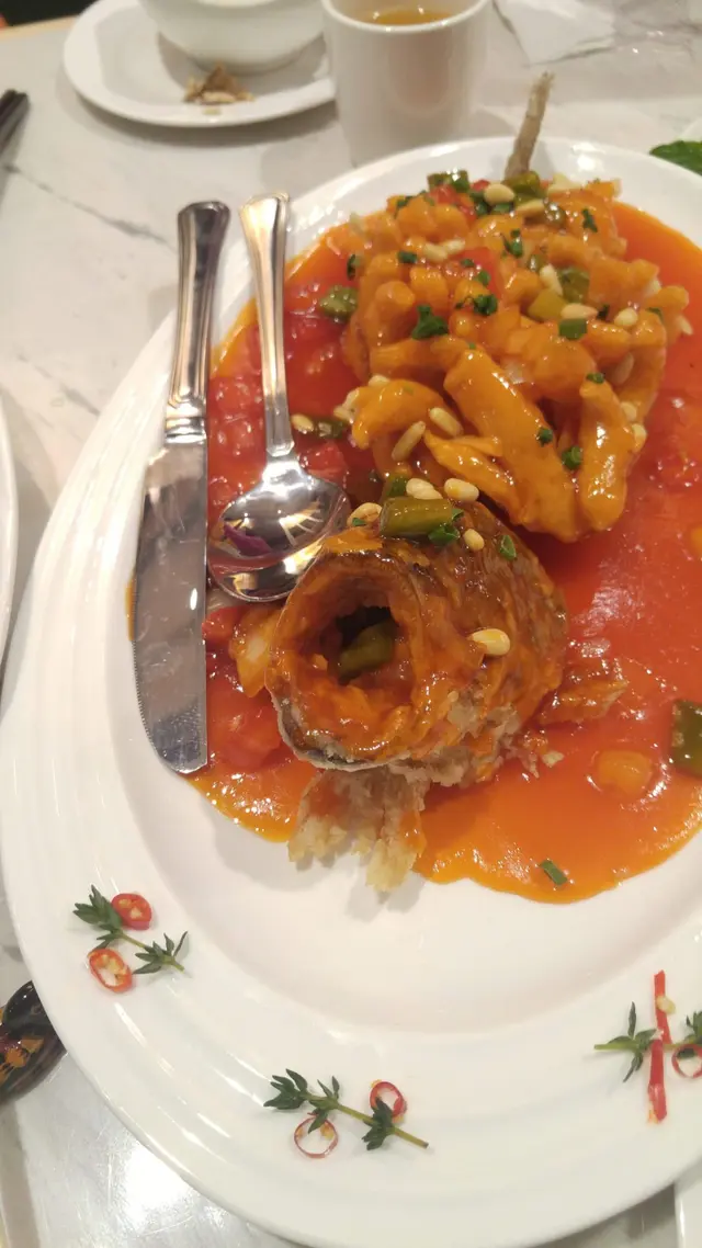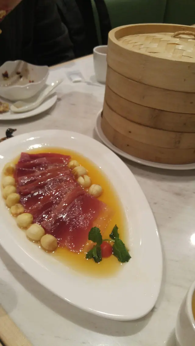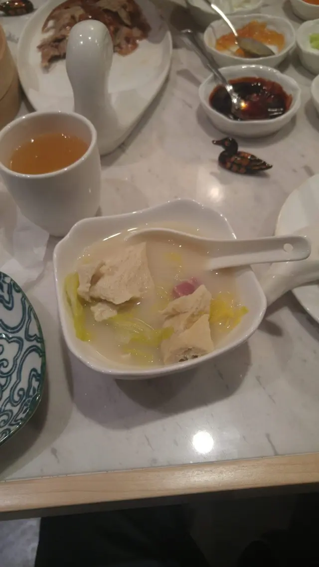 甜品則有高力豆沙、腰果露。重頭戲烤鴨沒有教人失望,皮薄、鴨香不膩醮上酸梅醬和蜜瓜,新鮮感倍增,一試無妨。另外,個人欣賞蜜汁烤雙方的麵包香滑軟熟,夾着甜甜的金華火腿;咸香味足。其他菜式都不過不失,與新式揚淮菜差不多,沒有驚喜。此外,再談一下