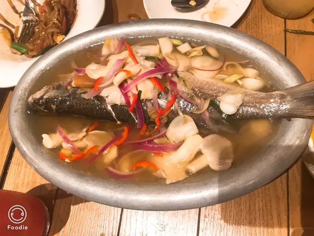 泰式粉絲沙律。個sauce味道酸酸辣辣夠開胃!入面有芹菜,甘筍,紫洋蔥。另外仲有海鮮包括:蝦,墨魚仔同青口,口感豐富。 可惜個人對芹菜同紫洋蔥麻麻