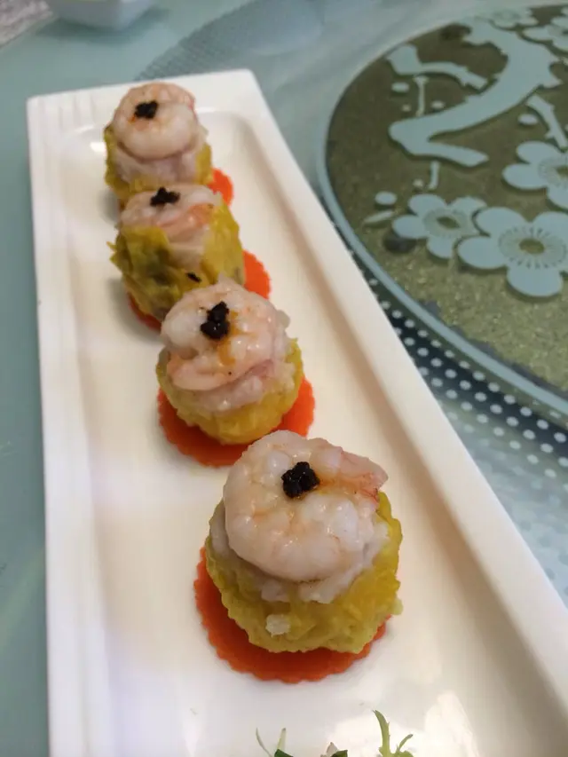 燒賣每個有原隻虾,虾本身已很鮮味爽口,虾上更有蟹籽點綴,令其味更鮮味。