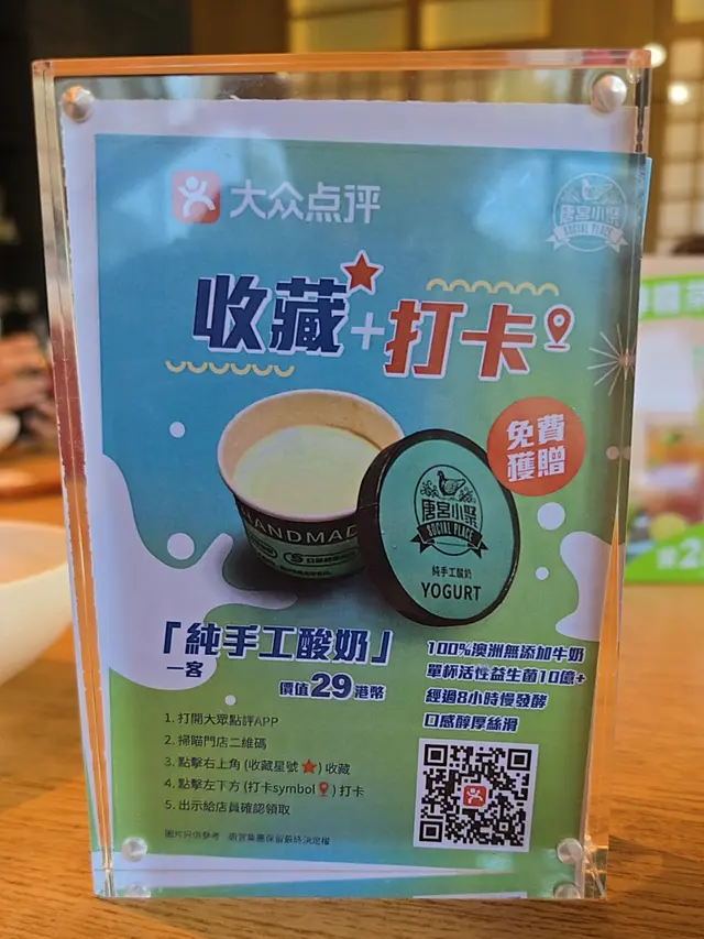 優惠二:在大眾點評打卡 贈送純手工酸奶乳酪一客$29 。