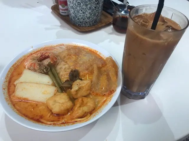 呢排鍾情東南亞菜!尋日食左船麵!今日就食喇沙!南香雞飯大部份客人都係order海南雞飯,我就order我至愛的喇沙!因為我鍾意有湯底的麵食!講返喇沙,料都幾足,有蝦、魚片、嚎粒仔、豬皮、豆卜,佢呢個喇沙係摻摻,即有米粉同粗麵,一次食兩種麵,講返味道,送就冇咩特別,不過嚎仔有好大海水味,呢個要注意下,另外個辣度剛剛好,不過就唔夠椰香,另外係個米粉同粗麵各有各放冇撈埋一齊,如果做多下功夫撈埋一齊會更好!最後,馬來西亞好飲,有d似港式奶茶但個甜度更合我口味!總結,喇沙份量幾大,lunch性價比ok!不過仍有改善地方,暫時中評!