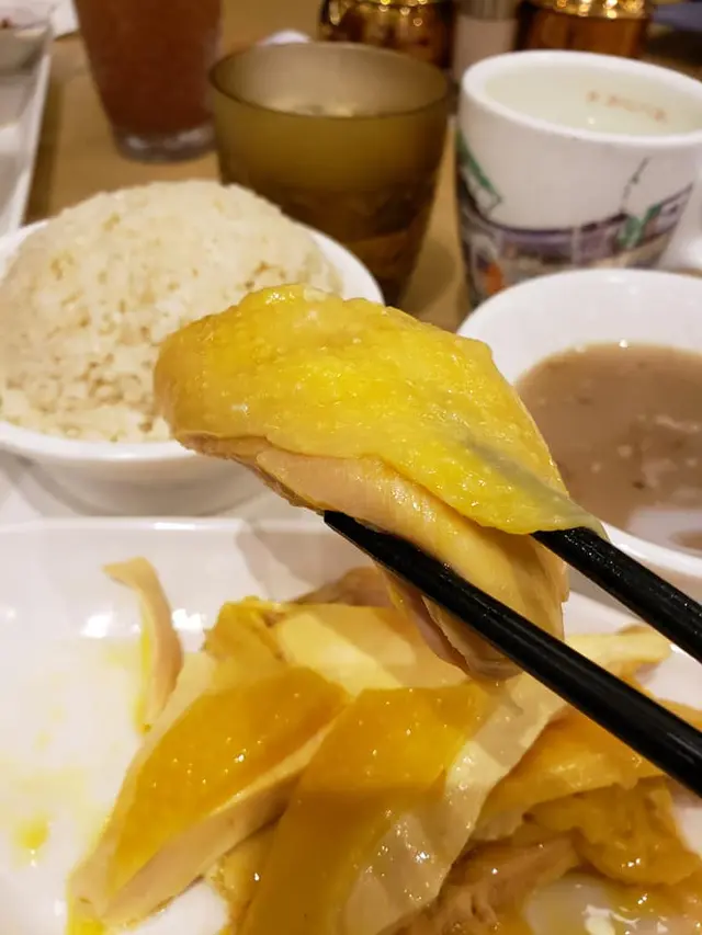 無骨海南雞飯$75(跟例湯~是日蓮藕唐排湯),雞皮夠薄透徹,皮下脂肪略有少許,雞肉味濃滑溜,飯都夠油香,湯水就淡味了一些,餐飲點了杯