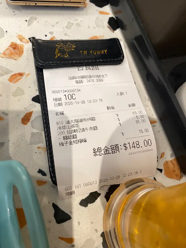 不錯的紅燒牛肉麵🍜 catnguLevel 32025-11-1022 views Follow 中午時全場爆滿,座位有點迫。餐牌選擇超級多,全部食物都包括一杯台式飲品,部份特飲需要另外加錢。我叫了鹵水大腸撈麵: 大腸夠腍,滷水味很香濃很入味,對我個人而言,認為大腸太肥,不希望中間有太多白色脂肪,所以這大腸不太適合我口味。撈麵我選擇了滷肉拌麵,麵質爽口彈牙。配青瓜絲減去油膩感。喜歡吃辣的可以選擇麻辣拌麵。朋友叫了紅燒牛肉麵:湯頭色澤是深沉,濃郁卻不混濁。湯層次分明和有中藥材的香氣,似是數小時慢火細燉出嚟,麵條選擇幼麵,有咬勁,彈牙,主角是那幾大塊帶筋的牛腱心。燉煮得極為透徹,用筷子輕撥便可分開,入口卻不鬆散。紅燒牛肉麵滷水豬腸撈麵1The above review is the personal opinion of a user which does not represent OpenRice's point of view.LikeShare不錯的紅燒牛肉麵🍜 台食館 (獨立大廈) https://s.openrice.com/QrKT0tI9V00Report Post Ratings4Taste3Decor5Service5Hygiene4ValueRecommended Dishes紅燒牛肉麵Dining MethodDine In