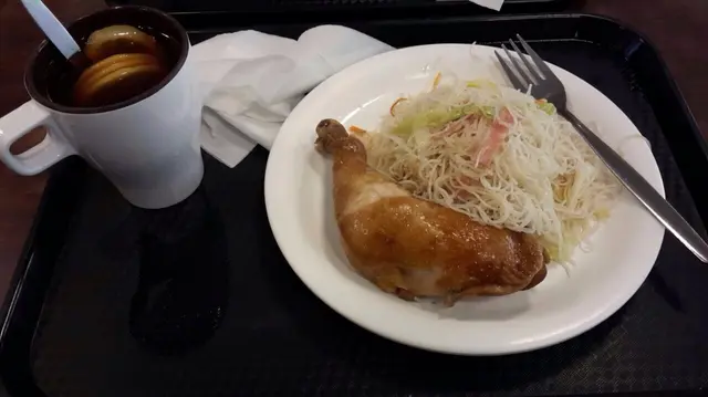炸雞脾炸薯條,但因覺得不太健康所以改為點了油雞脾,另外配米粉(雞脾餐除了雞脾和飲品外還可以搭一份小食)。