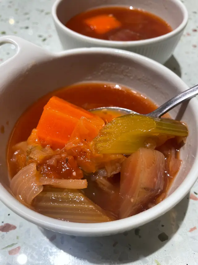 坐低無耐就送左兩個羅宋湯俾我哋飲,好足料。