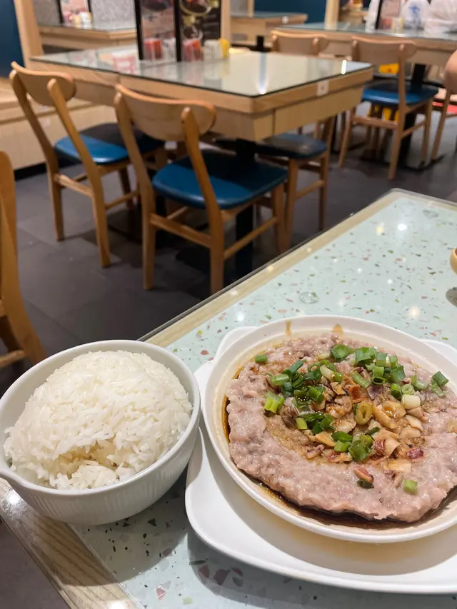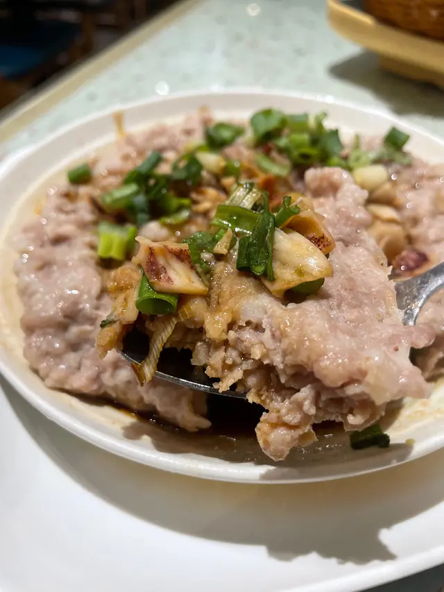 肉餅即叫即蒸,上枱見到超大塊直頭大過隻碟,肉餅本身夠厚實,但食落又唔會覺得蒸得過火,主角土魷就舖到成塊肉餅面都有,加埋個豉油撈飯食剛剛好 。
