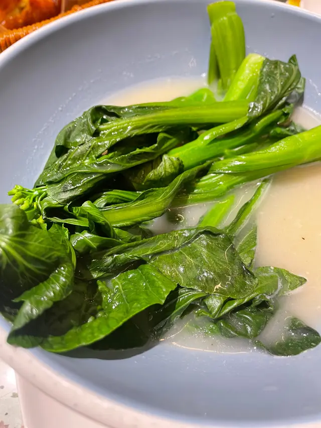 今次揀左食菜芯,浸喺鮮魚湯入面咁食可以平衡番呢餐其他餸嘅油膩。