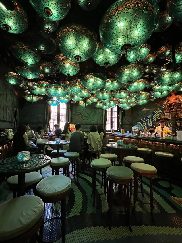 早前去過呢間好出名既Bar🥂都係比Social Media既相片吸引📷綠色蜻蜓造型既玻璃燈好吸引🦋 但去到發現中大伏🥱 環境看似好有空間感但係其實室內環境好細🌚樓底唔算高而且D檯好迫👎🏻當日坐高檯連袋都無位放 而且多人到好難同D吊燈打卡🥹 服務質素差完全叫天不應 野飲質素比較藥水Feel🤯 整體黎講環境唔Chill非常Overpriced感覺中伏😮💨